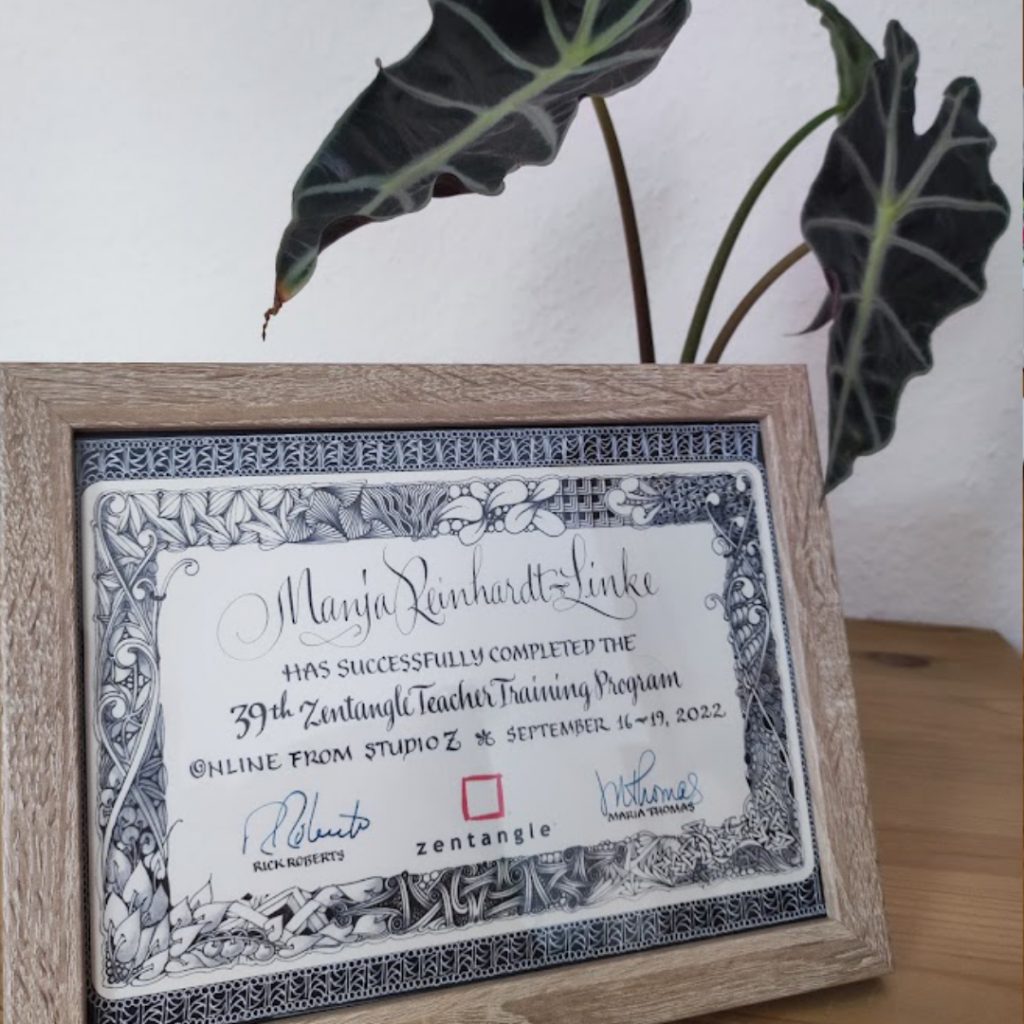 2021 hat mich die meditative Zeichenmethode Zentangle® in einer schwierigen Phase meines Lebens gefunden – und mich vom ersten Strich an fasziniert. Endlich mal im Hier und Jetzt sein, die Gedanken zur Ruhe bringen und am Ende auch noch – stolz auf mich selbst – ein kleines Kunstwerk in den Händen halten. Dieses Gefühl hat mich nicht mehr losgelassen!